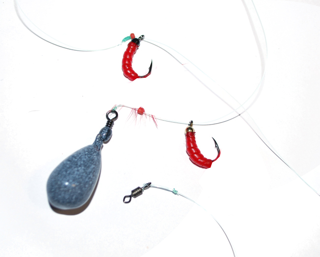 Žvejybai paruoštas velniukas su dviem šokliukais.